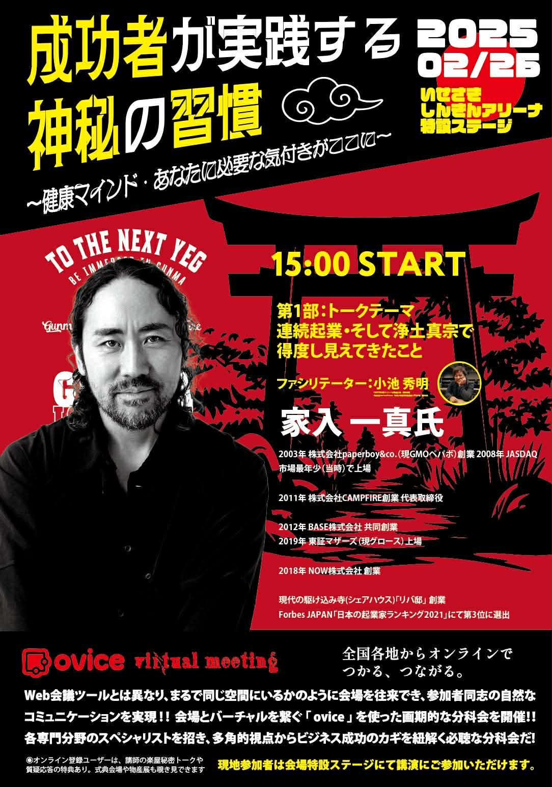 2026年1月23日(金)に渋沢MIXスタートアップ創出・成長支援プログラムの講演会にて、家入が登壇いたします。▼詳細日程:1/23(金)18:00~20:00(※講演時間18:00~19:00)場所:渋沢MIX(さいたま新都心駅から徒歩30秒) ※駐車場はございません内容:家入様による講演 60分 交流会 60分 ※ソフトドリンク・お茶菓子付き対象者:埼玉県内でのスタートアップ起業(予定含む)や本プログラムに関心のある方 オブザーバー*参加のみ受け付けております。(*)当日の講演参加のみ、講師への質疑は不可申し込み:事前の申し込みは不要です。当日、事務局の受付にて名刺を頂戴いたします。なお、席の都合から先着20名程度とさせていただきます。問い合わせ:渋沢MIXスタートアップ創出・成長支援プログラム運営事務局 … READ MORE